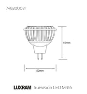 • Collection Name - Truevision • Finish - Clear, Grey • Weight - 0.075kg • Dimension Length - • Dimension Width - • Dimension Diameter - 50mm • Dimension Height - 49mm • Energy Class - A+ • Lamp Socket - MR16 • Colour Temperature - 6400K Cool White • Beam Angle - 36° • Lumens - 500lm • CRI - • Voltage - 12V AC • Switched - • Dimmable - No • IP Rating - • Average Life Hrs - 45000hrs • Warranty - 5yrs