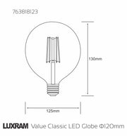 Luxram Value Classic LED Globe 125mm E27 4W Warm White 2700K, 470lm, Clear Finish • 763818123