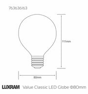 Luxram Value Classic LED Globe 80mm E27 8W 1055lm Warm White 2700K Colour-Box (Frosted) • 763636163