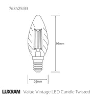 Luxram Value Vintage LED Candle Twisted E14 4W 2200K, 330lm, Gold Glass • 763425133