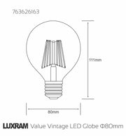 Luxram Value Vintage LED Globe 80mm E27 8W 2200K, 630lm, Gold Glass • 763626163