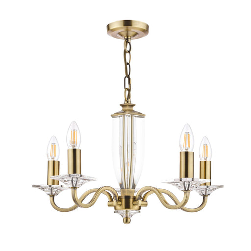 Interiors 1900The elegant 5 light pendant from the Stanford antique brass range has beautifully curved arms and simple clean detailing. Its complemented by prett...