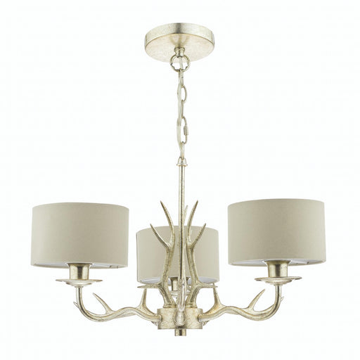David Hunt LightingAntler 3 light pendant hand painted in highland rustic finish with bronze metalwork. The fitting is supplied complete with cream fabric drum shades...