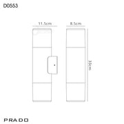 The IP44 Prado wall lamps combine tubular diffusers with a small amount of black framework to ensure an optimum amount of light dispersal from the E27 lampholders concealed within the covers. The single wall lamp is fixed in a vertical position from the base whilst the double wall lamp is fixed in the centre of the two tubular PC shades, allowing it to be installed either vertically or horizontally.