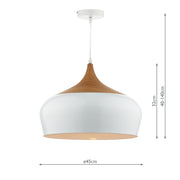 Dar Lighting Gaucho 1 Light Pendant White Large • GAU8602