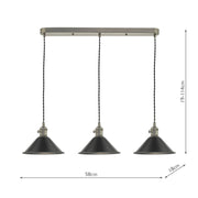 Dar Lighting Hadano 3 Light Antique Chrome Suspension With Antique Petwer Shades • HAD3661-02