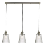 Dar Lighting Hadano 3 Light Antique Chrome Suspension With Ribbed Glass Shades • HAD3661-05