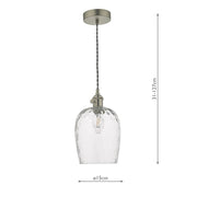 Dar Lighting Hadano Pendant Antique Chrome With Dimpled Glass Shade • HAD0161-03