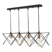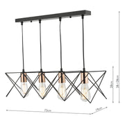 Dar Lighting Midi 4 Light Bar Pendant Black & Copper Detail • MID0422