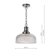 Dar Lighting Tack 1 Light Pendant Antique Chrome Textured glass • TAC0161