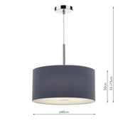 Dar Lighting Zaragoza 3 Light Pendant Grey 40cm • ZAR1039