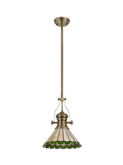 Regal Lighting SL-1036 1 Light 30cm Tiffany Pendant Antique Brass Grey And Cream With Clear Crystal Shade