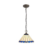 Regal Lighting SL-1176 3 Light 30cm Tiffany Pendant Blue And Cream With Clear Crystal Shade