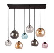 Searchlight Mardi Gras Ii 8Lt Bar Pendant Matt Black With Multi Colour Glass Shades • 94002-8BK
