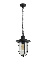 Regal Lighting SL-1988 1 Light Outdoor Ceiling Pendant Black And Gold With Seeded Glass IP54