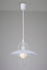 Riva combines unique contrasting components to produce a distinctive, modern collection of E27 single rise & fall pendants. The suspension is fashioned to mimic a traditional coiled phone wire, this then leads to the framework which mirrors a birdcage shape surrounding the lampholder. The centre of this framework is then encircled by an opal glass, fixed in a downward direction, shaped like a shallow dish. These pendants are available in five colour finishes; matt black, matt white, antique brass, polished brass and polished chrome ensuring Riva has a suitable pendant for any room decor.