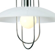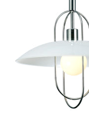 Riva combines unique contrasting components to produce a distinctive, modern collection of E27 single rise & fall pendants. The suspension is fashioned to mimic a traditional coiled phone wire, this then leads to the framework which mirrors a birdcage shape surrounding the lampholder. The centre of this framework is then encircled by an opal glass, fixed in a downward direction, shaped like a shallow dish. These pendants are available in five colour finishes; matt black, matt white, antique brass, polished brass and polished chrome ensuring Riva has a suitable pendant for any room decor.