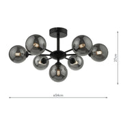 Dar Lighting Cohen 7 Light Semi Flush Matt Black Smoked Glass • COH3422-01