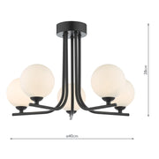 Dar Lighting Cradle 5 Light Semi Flush Matt Black Opal Glass • CRA5422-02