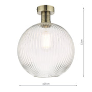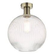 Dar Lighting Emerson Semi Flush Antique Brass Round Ribbed Glass • EME4875-E02