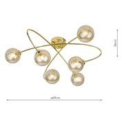 Dar Lighting Etta 6 Light Semi Flush Polished Gold Champagne Glass • ETT6435