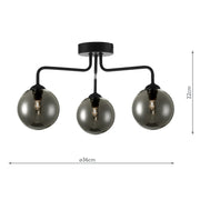 Dar Lighting Feya 3 Light Semi Flush Matt Black Smoked Glass • FEY0322-01