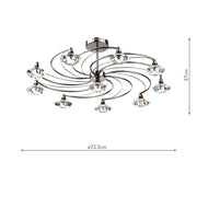 Dar Lighting Luther 10 Light Semi Flush Black Chrome Crystal • LUT2367