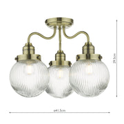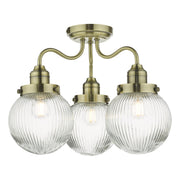 Dar Lighting Tamara 3 Light Bathroom Semi Flush Antique Brass Ribbed Glass IP44 • TAM5375-IP44