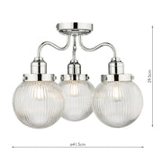 Dar Lighting Tamara 3 Light Bathroom Semi Flush Polished Chrome Ribbed Glass IP44 • TAM5350-IP44