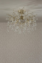 Laura Ashley Willow 3lt Semi Flush Satin Champagne Crystal • LA3756150-Q