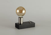 Available in either an antique brass and wood or black and satin nickel colour finish, the Fike range is essentially a simplistic design but its unique originality presents an eye-catching table lamp. The cliché wood shop construction of the simple block base holding the E27 lampholder are paired with an old-fashioned rotary switch. When used in conjuction with a decorative lamp Fike can produce an even more vintage feel in their given room setting.