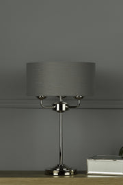 Laura Ashley Sorrento 3lt Table Lamp Polished Nickel With Charcoal Shade • LA3702786-Q