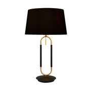 Searchlight Jazz 1Lt Table Lamp, Satin Brass And Black, Black Velvet Shade. Pull Switch • 41431SB