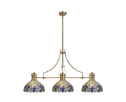 Regal Lighting SL-1009 3 Light Tiffany Pendant Antique Brass With Blue And Clear Crystal Shades
