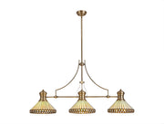 Regal Lighting SL-1012 3 Light Tiffany Pendant Antique Brass Amber And Cream With Clear Crystal Shades
