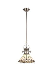 Regal Lighting SL-1023 1 Light 30cm Tiffany Pendant Polished Nickel Grey And Cream With Clear Crystal Shade