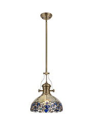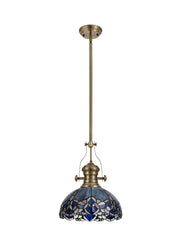 Regal Lighting SL-1029 1 Light 30cm Tiffany Pendant Antique Brass Blue With Clear Crystal Shade