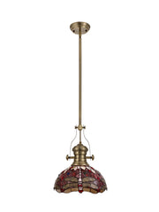 Regal Lighting SL-1030 1 Light 30cm Tiffany Pendant Antique Brass Purple And Pink With Clear Crystal Shade