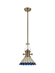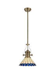 Regal Lighting SL-1033 1 Light 30cm Tiffany Pendant Antique Brass Blue And Cream With Clear Crystal Shade