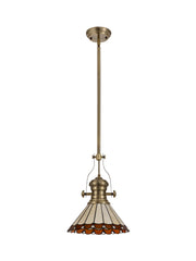 Regal Lighting SL-1035 1 Light 30cm Tiffany Pendant Antique Brass Amber And Cream With Clear Crystal Shade