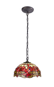 Regal Lighting SL-1396 1 Light 30cm Tiffany Pendant Purple And Pink With Clear Crystal Shade