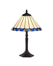 Regal Lighting SL-1179 1 Light Octagonal Tiffany Table Lamp 30cm Blue And Cream With Clear Crystal Shade
