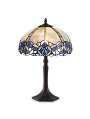 Regal Lighting SL-1341 1 Light Octagonal Tiffany Table Lamp 30cm Blue With Clear Crystal Shade
