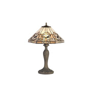 Regal Lighting SL-1460 2 Light Curved Tiffany Table Lamp 40cm White, Grey And Black With Clear Crystal Shade