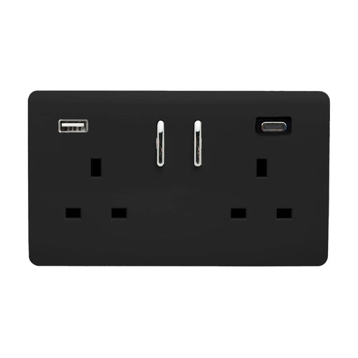 View full detailsTrendi, Artistic Modern 2 Gang USB 1 x Type A & 1 x Type C 3.1mAh Plug Socket Matt Black Finish, BRITISH MADE • ART-SKT213USB31ACMBK