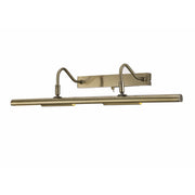 The Abacus range is a group of 4 picture wall lamps available in two sizes per colour finish, a 2 light and a 4 light. The 2 light lamp holds the slimline light bar using one arm which curves out from the small back plate, the 4 light has a longer bar held to the back plate with two curved arms. The satin nickel and antique brass finishes are in keeping with the wall lamps traditional design. Both fixtures take G9 lamps.