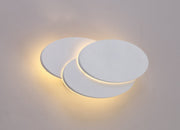 The use of three offset layered shapes creates a compellingly attractive design feature within this range. With the integral 3000K LEDs back lighting the sand white forms, the fixture emits a soft halo of light around each individual rectangle or oval piece. The Kiania wall lights would provide a key feature to any room setting not only offering visual interest but highly functional 14W light emission.