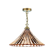 Dar Lighting Ardeche 1 Light Large Pendant Amber Glass & Antique Brass • ARD866