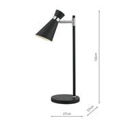 Dar Lighting Ashworth Table Lamp Matt Black & Polished Chrome • ASH4122