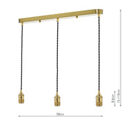 Dar Lighting 3 Light Bar Suspension Brass With Black Cable • SPB3640